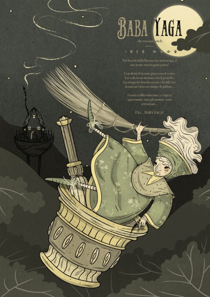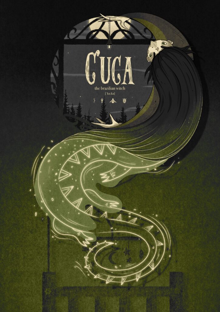 Poster illustrati: Cuca (Brasile), Janara (Italia), Baba Yaga(Est Europa)